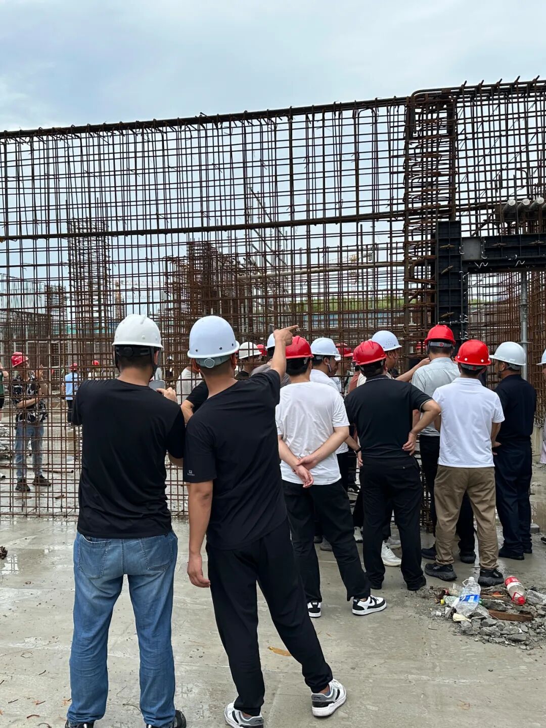 活动分为两个部分:首先,全体代表赴六安市安徽国防科技职业学院新校区人防工程施工现场,观摩五行人防工程设备有限公司依据新标准实施的预埋件规范化处理示范作业。现场演示紧密结合实际施工流程,突出展示了预埋定位、焊接防变形、涂层防腐等关键工艺的控制要点。代表们就施工精度、质量通病防治和验收标准等与企业技术人员开展了深入交流与研讨,现场气氛热烈,成效显著。